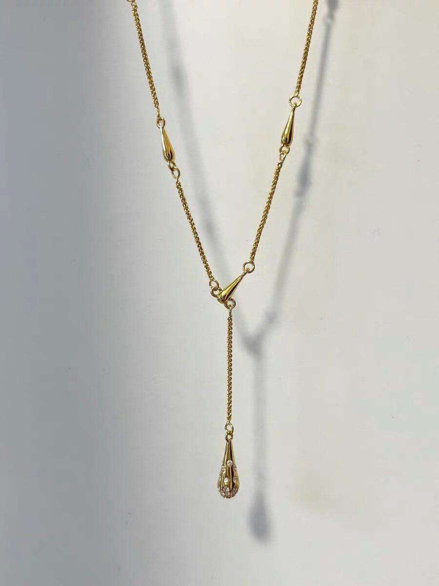 Zircon Layered Y-Chain Collar Necklace