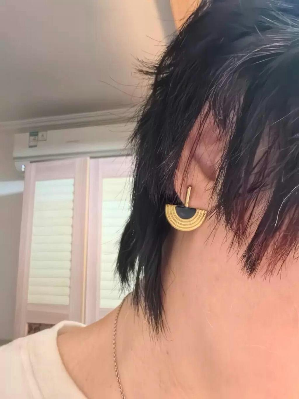 Sculptural Black Agate & Gold Earrings